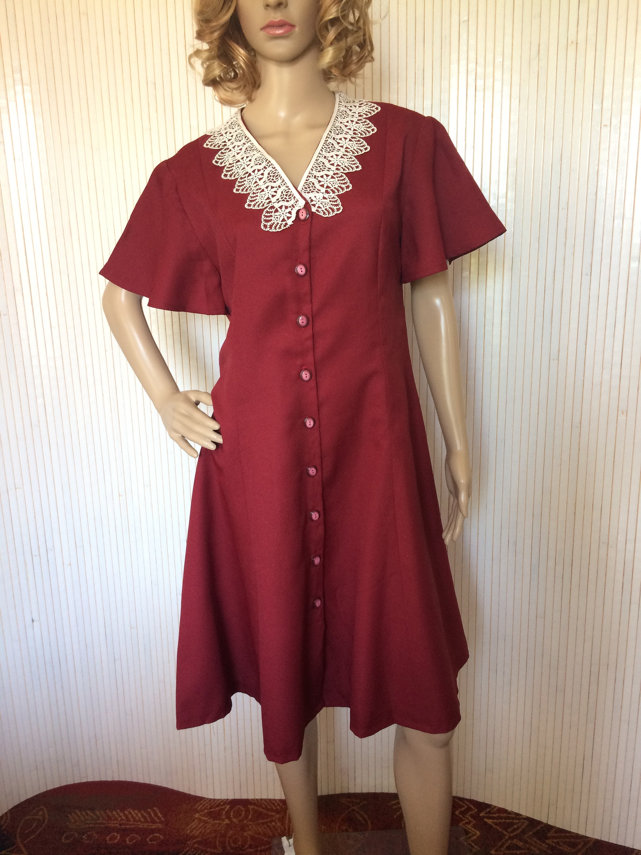 Vintage Dress Bordeaux Collar Flared Chic Lace T42 Etsy