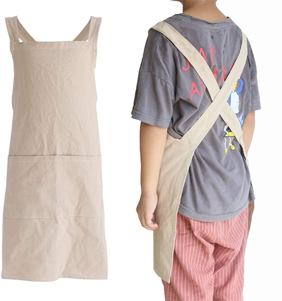 Children Cotton Cross Back Apron Japanese Style Bib Home Clothes Painting Soft Comfort Pinafore Apron For Girls Boys Khaki 21 6 21 6inch Walmart Com